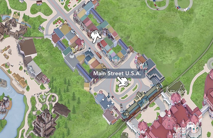 Muy cerca de ahí podrás acompañar a Minnie y a su banda de músicos al ritmo de una vibrante fanfarria, ¡Reinterpretando los clásicos Disney! El recorrido comienza desde la puerta de Town Square junto a Discovery Arcade y desde ese punto se dirige hacia el Castillo haciendo una parada a la altura del restaurante Walt´s. Allí se detienen y regresan hacia Town Square rodeando la plaza y pasando delante de City Hall. El show finaliza en la misma puerta de donde salieron teniendo una duración de 20 minutos en total. Para verlo bien es necesario coger sitio unos 5 o 10 minutos antes. Esta es la ubicación que os recomendamos para verlo: