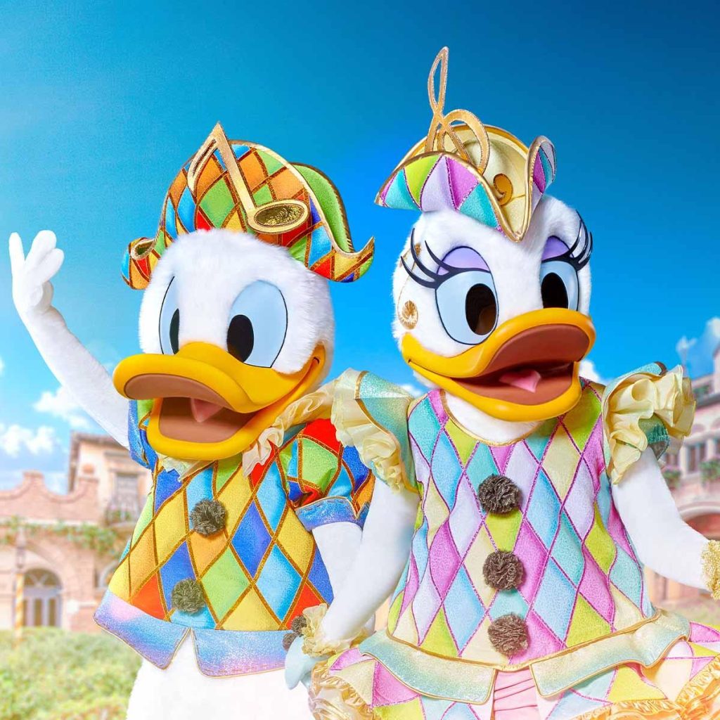 Déjate envolver por las notas románticas del acordeonista de Donald y Daisy y disfruta, como ellos, de un instante de pura poesía frente a la Pizzería Bella Notte. ¡Nuestra pareja de enamorados incluso se ha vestido con los colores de la “Commedia dell’Arte” para la ocasión! Es un mini show pero muy divertido, diría que es el más divertido de todos. Muy recomendable. Para coger buen sitio en primera fila debes irte al menos 15 o 20 minutos antes de cada pase.